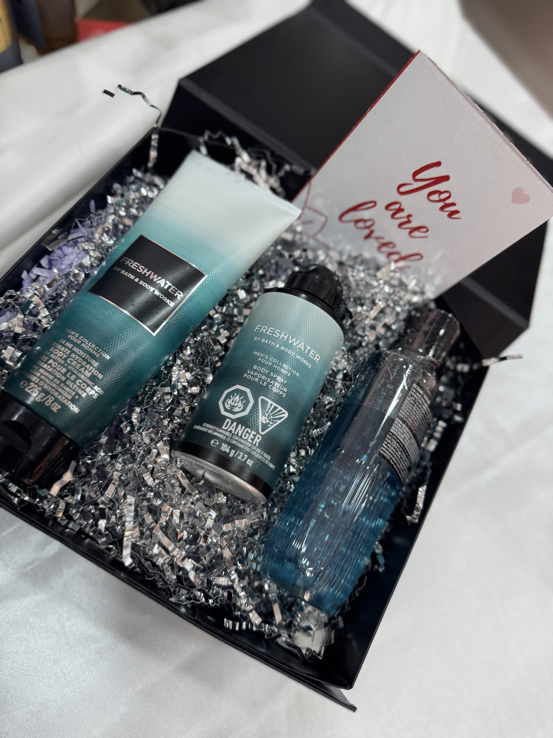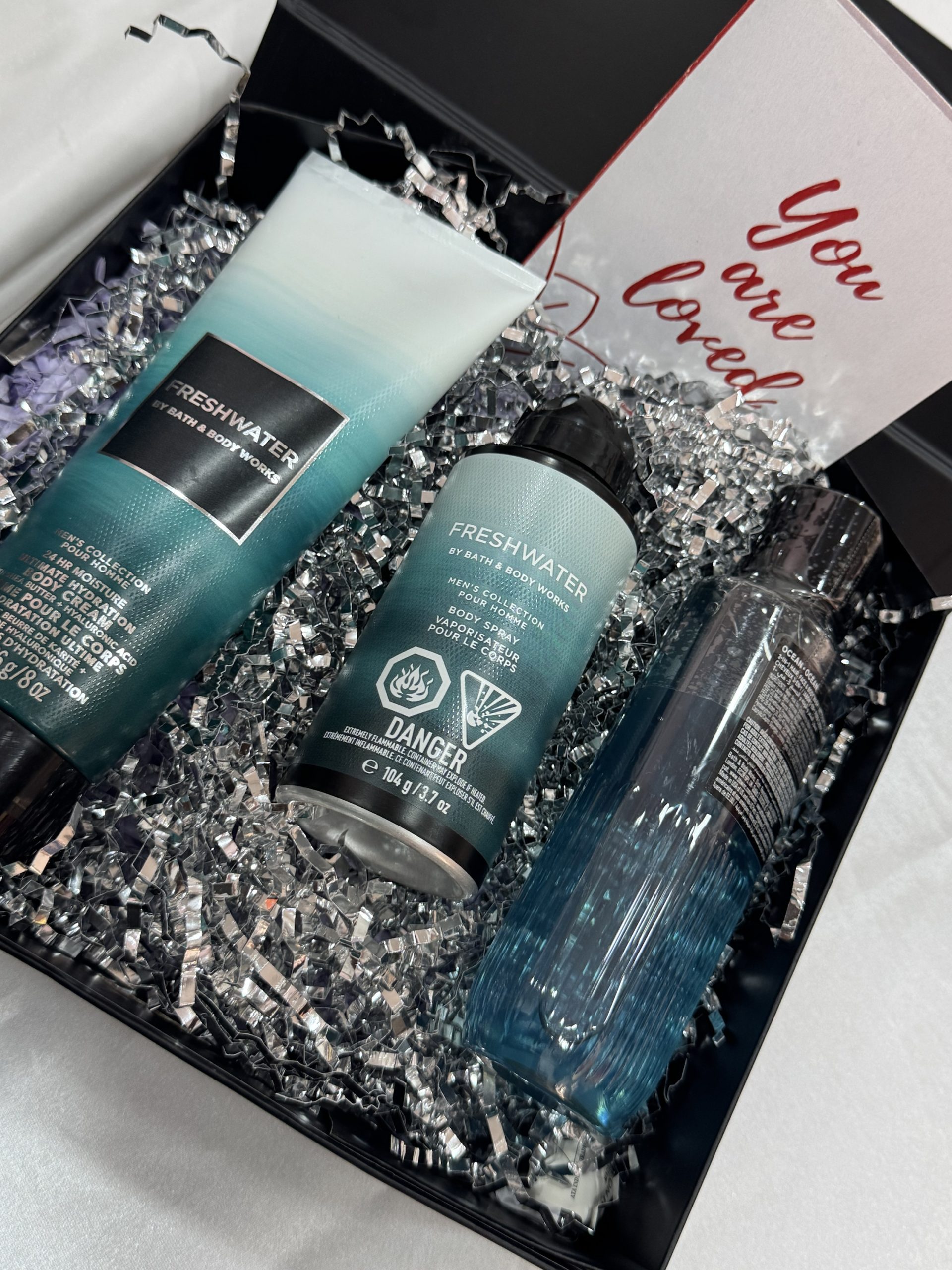 This gift set comes with a shower gel / body wash, body cream, and a fragrancespray